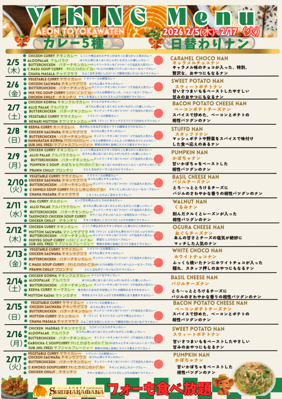 2026年のスバカマナの名物イベント食べ放題バイキング第1弾の開催が決定いたしました!!!