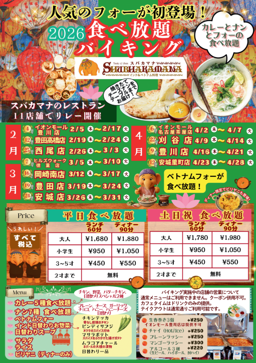 2026年のスバカマナの名物イベント食べ放題バイキング第1弾の開催が決定いたしました!!!